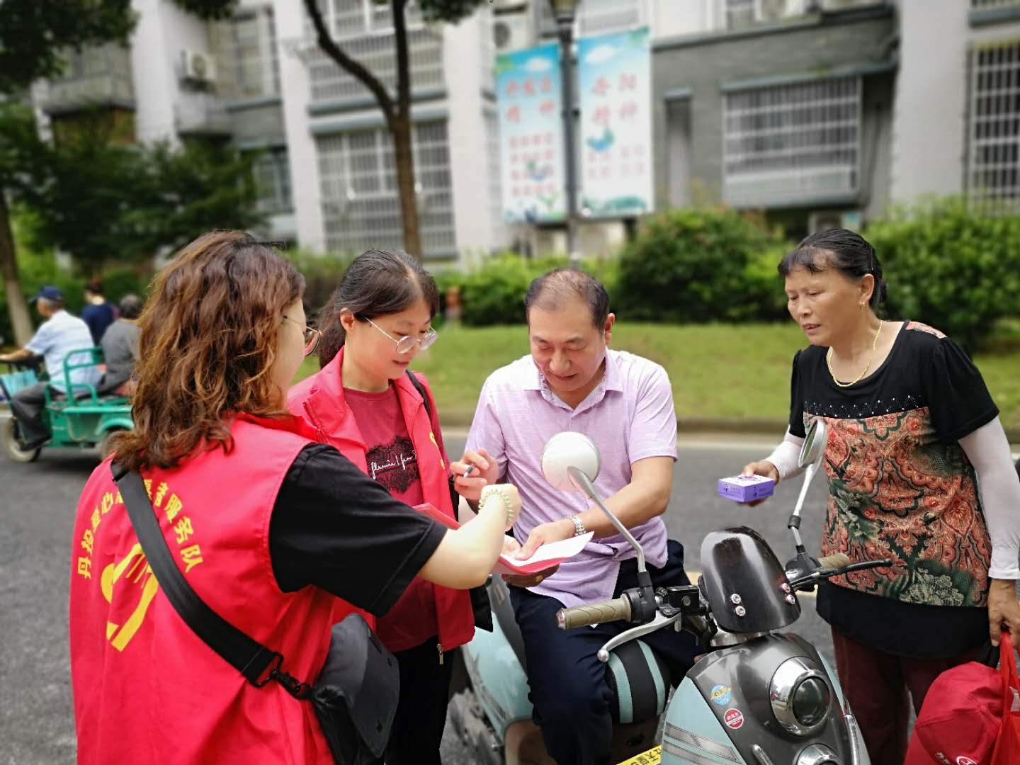 黨員志愿者在練湖社區指導市民填寫“文明城市”創建走訪調查表